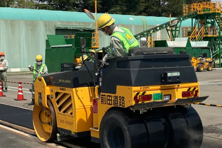 2023年4月,日工集團與日本最大道路施工企業之一的前田道路公司合作,使用世界首款氫氣燃燒器生產出了瀝青混合料,并進行了相關的攤鋪實驗。實驗中,對混合料的物理性及施工性能均進行了嚴格的分析及研究,取得了圓滿成功。